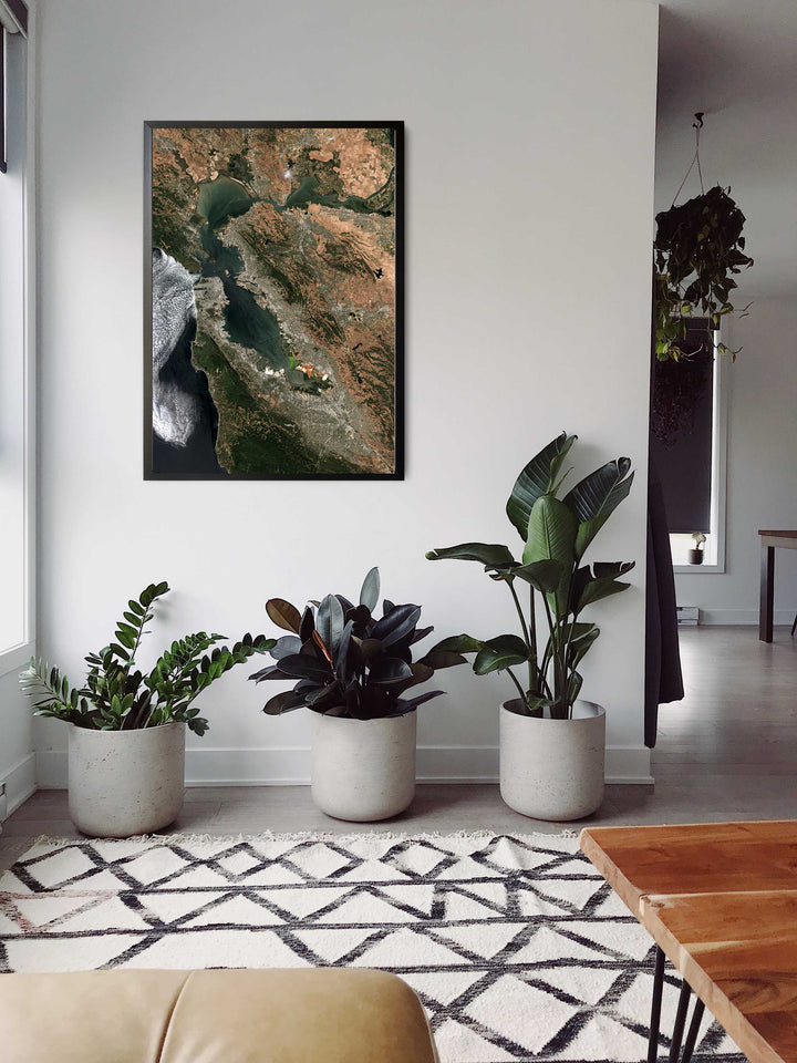 Ontdek de iconische schoonheid van San Francisco vanuit de ruimte met deze indrukwekkende satellietfoto. De foto toont de Bay Area in uitzonderlijk detail: van de Golden Gate Bridge tot de kronkelende kustlijnen en de karakteristieke zeemist die over de stad en de oceaan rolt.